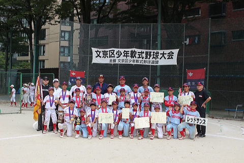 5月4日、六義公園運動場にて、第50回、文京区少年軟式野球春季大会の決勝戦が行われ、高学年の部では兄弟対決となりレッドサンズAが優勝、レッドサンズBが準優勝となりました。 低学年の部では、レッドサンズAが菊坂ファイヤーズと対戦し見事優勝となりました。 6年生はすでに全日本学童都大会への権利を得ており、レッドサンズBが東京都知事杯に出場。 低学年優勝の4年生は、7月に杉並区で行なわれる、ミサワホームJr選手権大会への出場を決めました。 文京区の推薦を受けて上部大会へ出場しますので、どの学年においても、健闘を期待します。 |