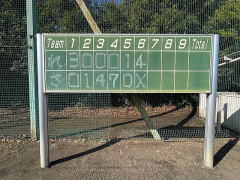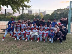 | 第50回、文京区少年軟式野球秋季大会の決勝戦が、六義公園運動場にて行なわれ、学童高学年の部ではレッドサンズが6年生のAチームと、5年生のCチームの兄弟対決となり、6年生のAチームが兄貴の貫禄を示し、7対0の4回コールドで下し優勝しました。 | |