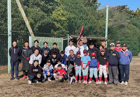 | 今年もたくさん集まりました。小中高大社会人まで約30人。 全員でアップのあとは硬いボールでキャッチボール、トスバッティング、シートノック、フリーバッティング。 その後は2組に分かれての試合。レッドチームとサンズチームが白熱した試合を展開。今年は裏攻めのサンズチームが中盤に大量得点を挙げて勝利。最後に全員で記念撮影、グランド整備をして終了。午後は場所を変えての食事会。その後大人たちは夜の街へ消えていきました。 皆さま、良いお年をお迎えください。 |
