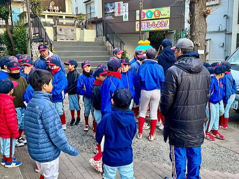 | 2026年活動始め。 朝7時、宮下公園に集合して新年の挨拶と、今年から1月に新体制となるため各学年ごとに監督・コーチの発表を行なってから、全員で必勝祈願。その後各学年ごとにミーティングを行ない活動を開始しました。 |
