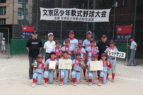 5月4日、六義公園運動場にて、第50回、文京区少年軟式野球春季大会の決勝戦が行われ、高学年の部では兄弟対決となりレッドサンズAが優勝、レッドサンズBが準優勝となりました。 低学年の部では、レッドサンズAが菊坂ファイヤーズと対戦し見事優勝となりました。 6年生はすでに全日本学童都大会への権利を得ており、レッドサンズBが東京都知事杯に出場。 低学年優勝の4年生は、7月に杉並区で行なわれる、ミサワホームJr選手権大会への出場を決めました。 文京区の推薦を受けて上部大会へ出場しますので、どの学年においても、健闘を期待します。 |